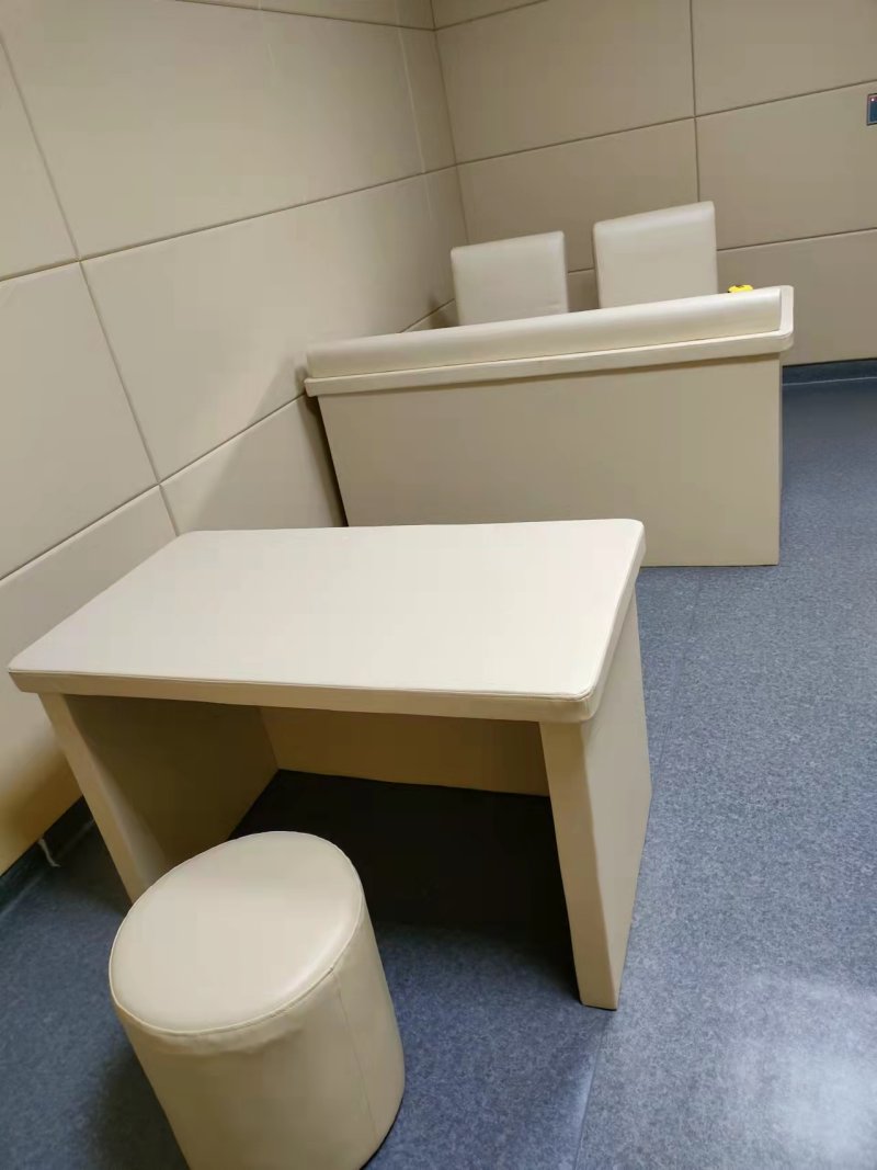 另外,談話室還應配備防撞臺面桌椅,均用新型防撞材料軟包處理, 門邊都須是軟質(zhì)條子包裹, 門把手須是