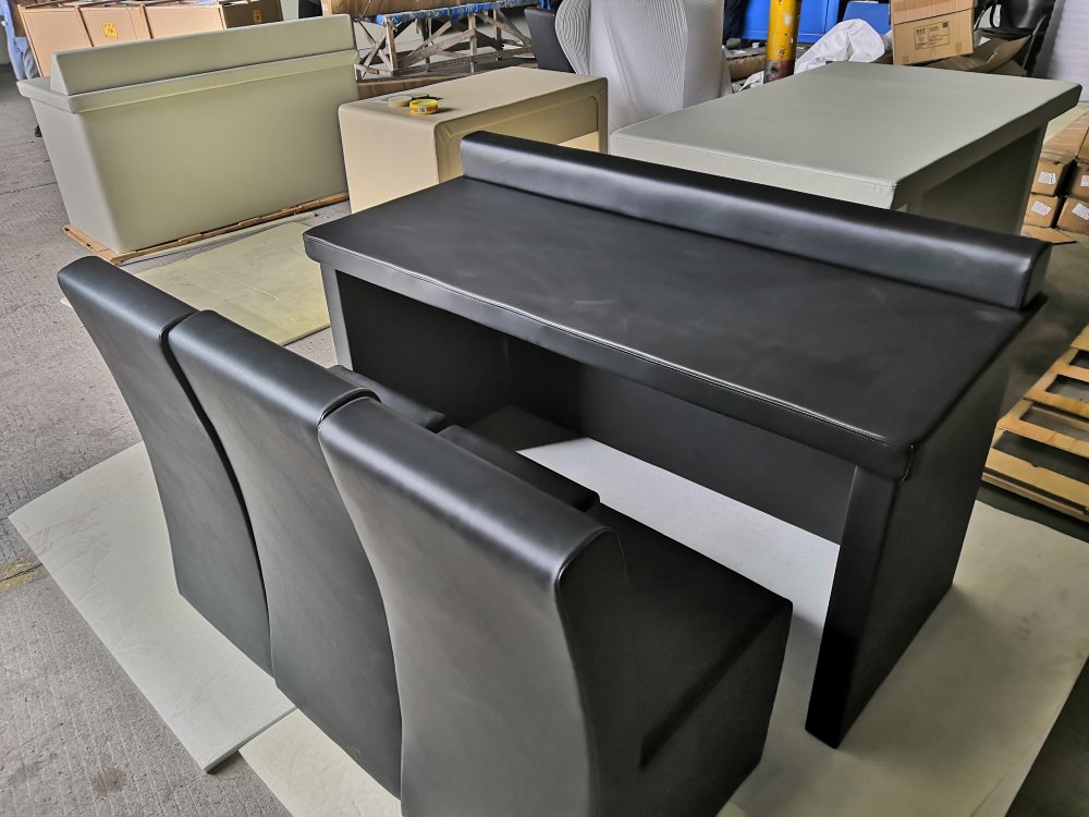 5、審訊桌采用長方形桌體,桌內(nèi)預(yù)留筆記本電腦及打印機電源及報警系統(tǒng),并采用隱蔽式安裝方式。