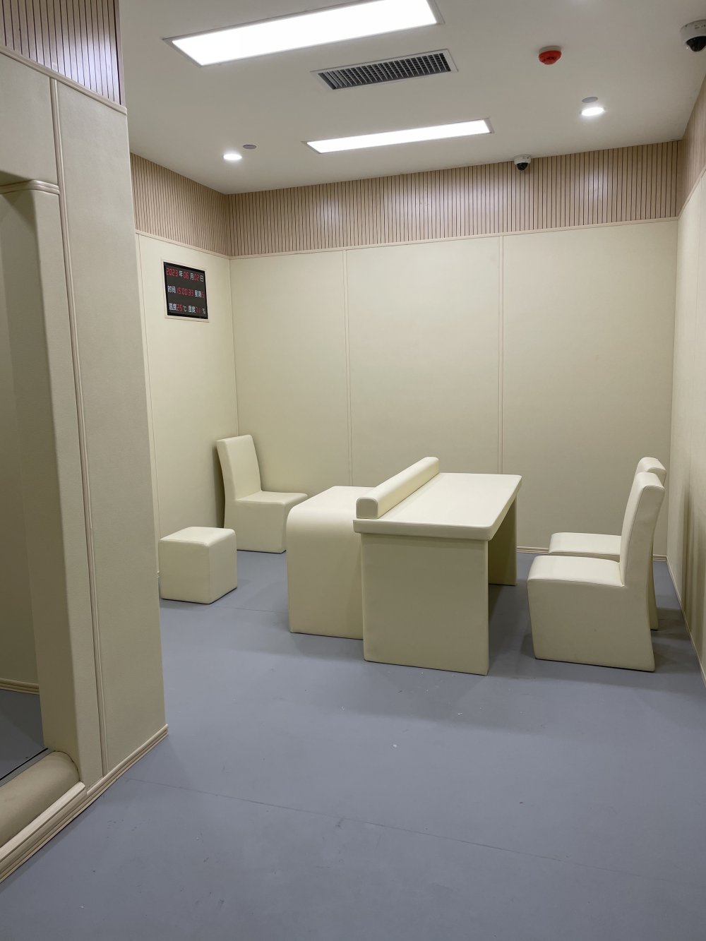 在談話室中,為了防止被訊問人員因情緒激動或突發(fā)狀況導(dǎo)致的意外傷害,安裝防撞軟包顯得尤為重要。防撞軟包通常由柔軟且具有一定彈性的材料制成,如高密度海綿、軟質(zhì)橡膠等,能夠有效減輕碰撞時的沖擊力,保護人員安全。